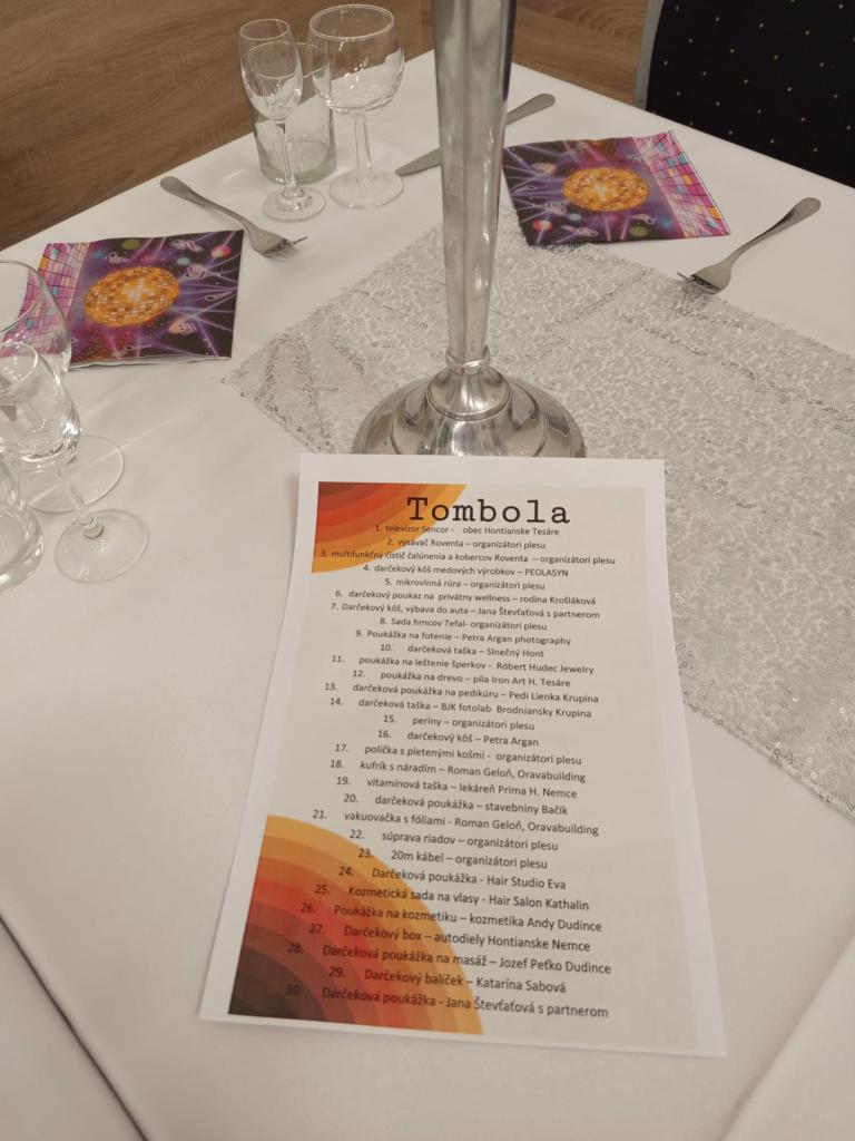 Veľkú radosť priniesla aj bohatá tombola, v ktorej mali niektorí účastníci dokonca dvakrát šťastnú ruku a odniesli si hodnotné ceny. Za mimoriadne krásne gesto patrí poďakovanie Jakub Kardoš, ktorý svoje dve výhry – televízor a vysávač – daroval Materskej škole so Základnou školou v Hontianskych Tesároch. Za tento čin mu srdečne poďakovala pani učiteľka a organizátorka plesu Ivka Severová Bachroňová.
