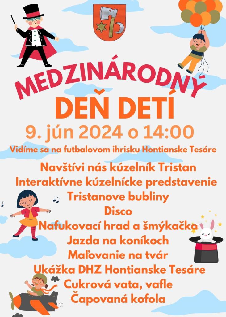 Medzinárodný deň detí sme spolu oslávili na futbalovom ihrisku 09. 06. 2024. Deti sa vybláznili na nafukovacom hrade a šmýkačke, DHZ Hontianske Tesáre nás pokropili a osviežili vodou, ukázali hasičskú techniku, kúzelník nás celý čas zabával skvelým programom, čo to sme sa aj naučili a kto chcel mohol si dať nakresliť maľbu na tvár. Deti si domov odnášali balíček sladkosti, pochutili si na hot dogu a čapovanej kofole. Ďakujeme všetkým, ktorí sa zapojili a pomohli nám s organizáciou podujatia.